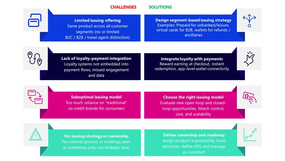 - Pilot, measure, iterate: an agile and iterative approach has proven effective for airlines. Start small, test quickly, and scale what works. Issuing is not a binary decision but a continuum of initiatives that can evolve with customer needs and business maturity.