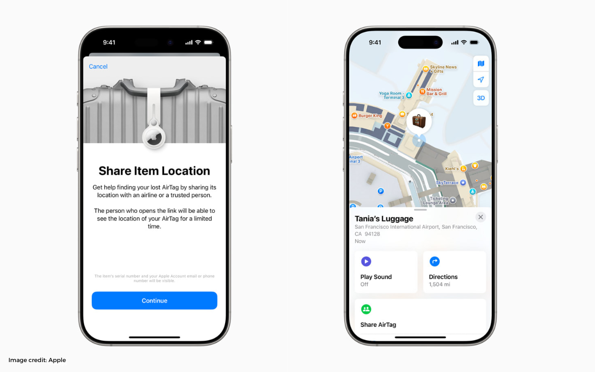 Digital solutions like Apple’s AirTag and Find My network accessory are popular with passengers seeking more assurance on the safety of their luggage. In November, Apple announced Share Item Location, a new iOS feature that enables users to securely share this information directly with airlines.