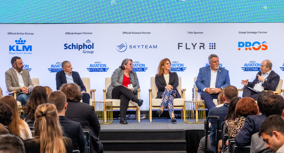 At World Aviation Festival 2024, Henry Harteveldt, Travel Industry Analyst, Atmosphere Research Group (Moderator), Ricky Horwitz, Global Head of Sales – Travel, Ticketing and Lodging, Allianz Partners, Onur Dedeköylü, , Chief Commercial Officer, Pegasus Airlines, Heike Birlenbach, Chief Commercial Officer (CCO) & Member of the Board Swiss International Air Lines, Andrew Murphy, Chief Business Officer, CarTrawler, and Melissa Skluzacek, Director – Trading & Revenue Management, easyJet, joined for the commerical leaders pannel.